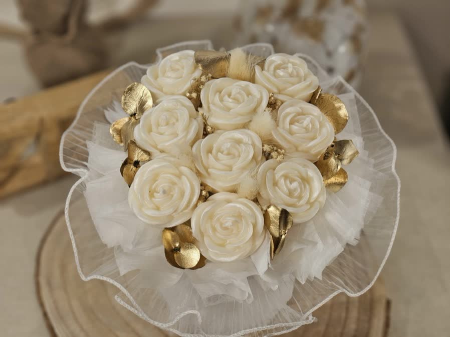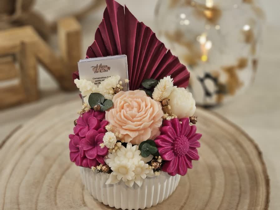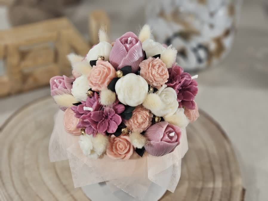 Création de bougies et fondants parfumés sous forme de bouquets et compositions florales.