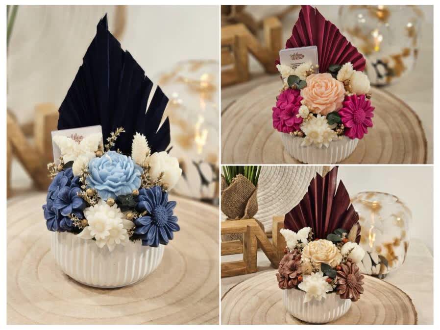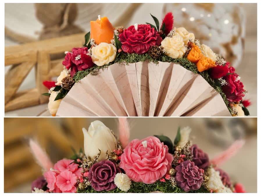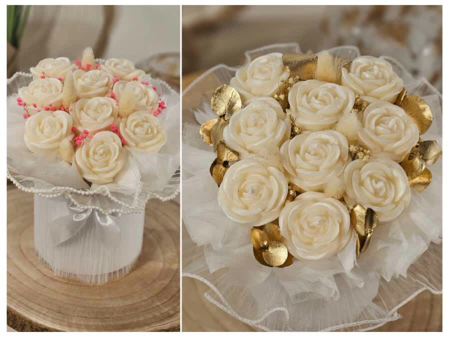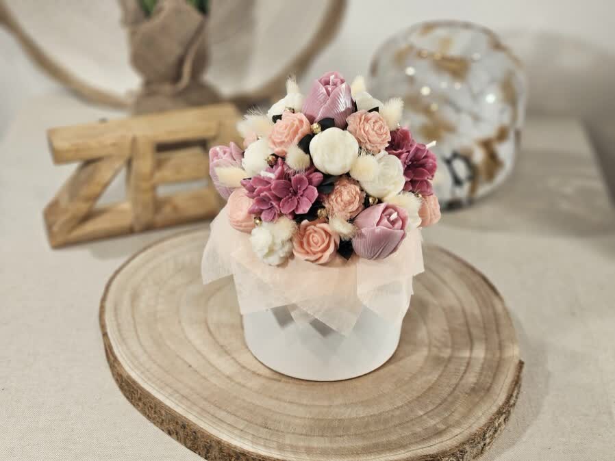 Création de bougies et fondants parfumés sous forme de bouquets et compositions florales.