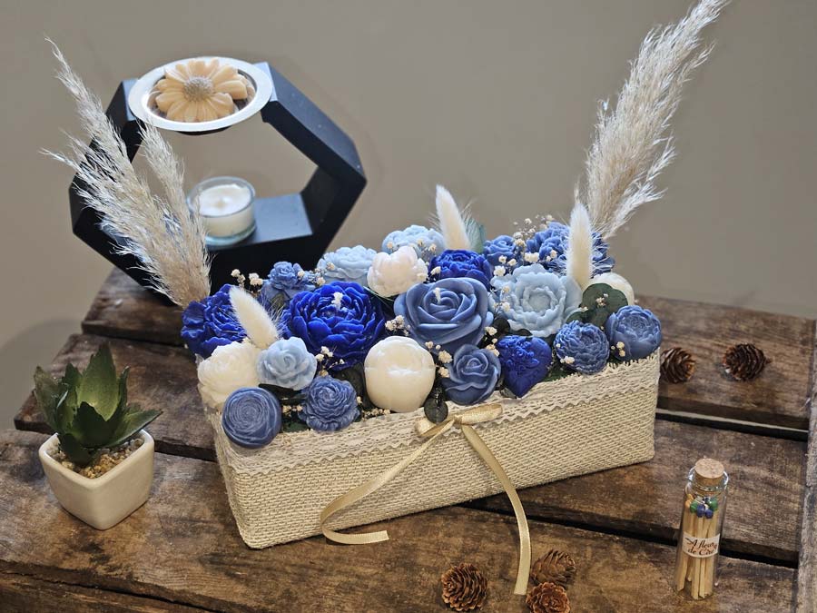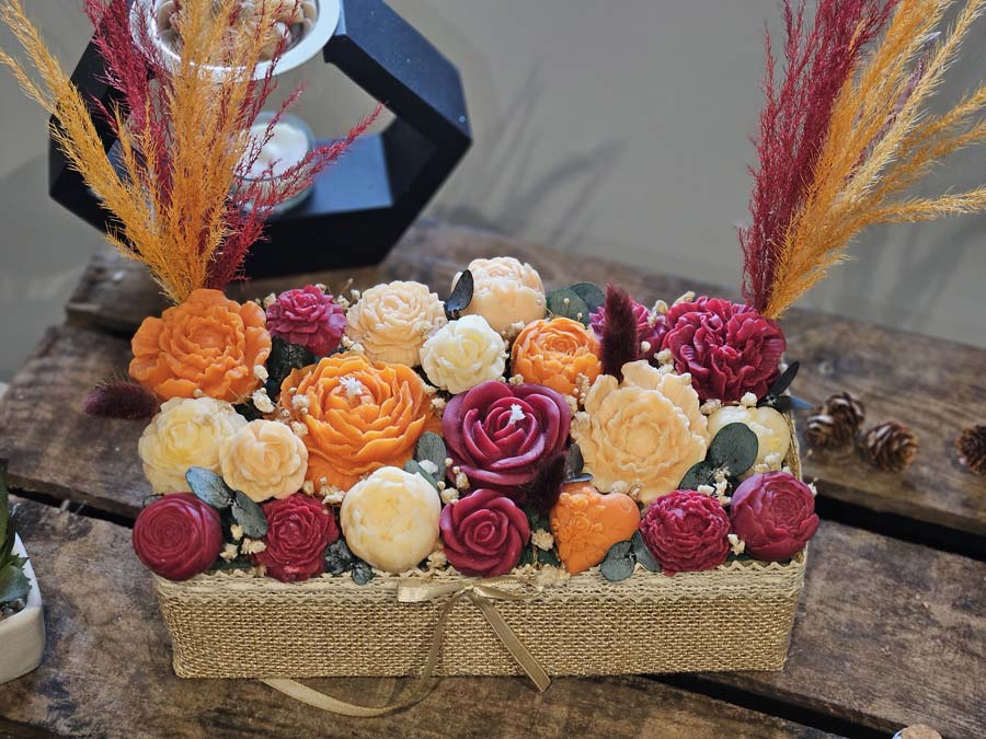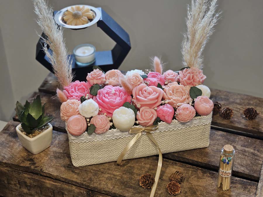 Bouquets de bougies et fondants parfumés en cire 100% végétale, sans OGM, biodégradable, vegan, non testée sur les animaux, entièrement fabriqués à la main dans mon atelier situé en Vendée.
